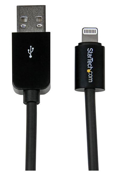 1m, Apple 8-pin Lightning Connector to USB, negro StarTech.com 1m USB - 8-pin Lightning m/m. Conector 1: USB A, Conector 2: Lightning, Tipo de género: macho/macho. Tasa de transferencia (máx): 480 Mbit/s. Longitud de cable: 1 m, Peso: 31 g. Peso del paquete: 80 g